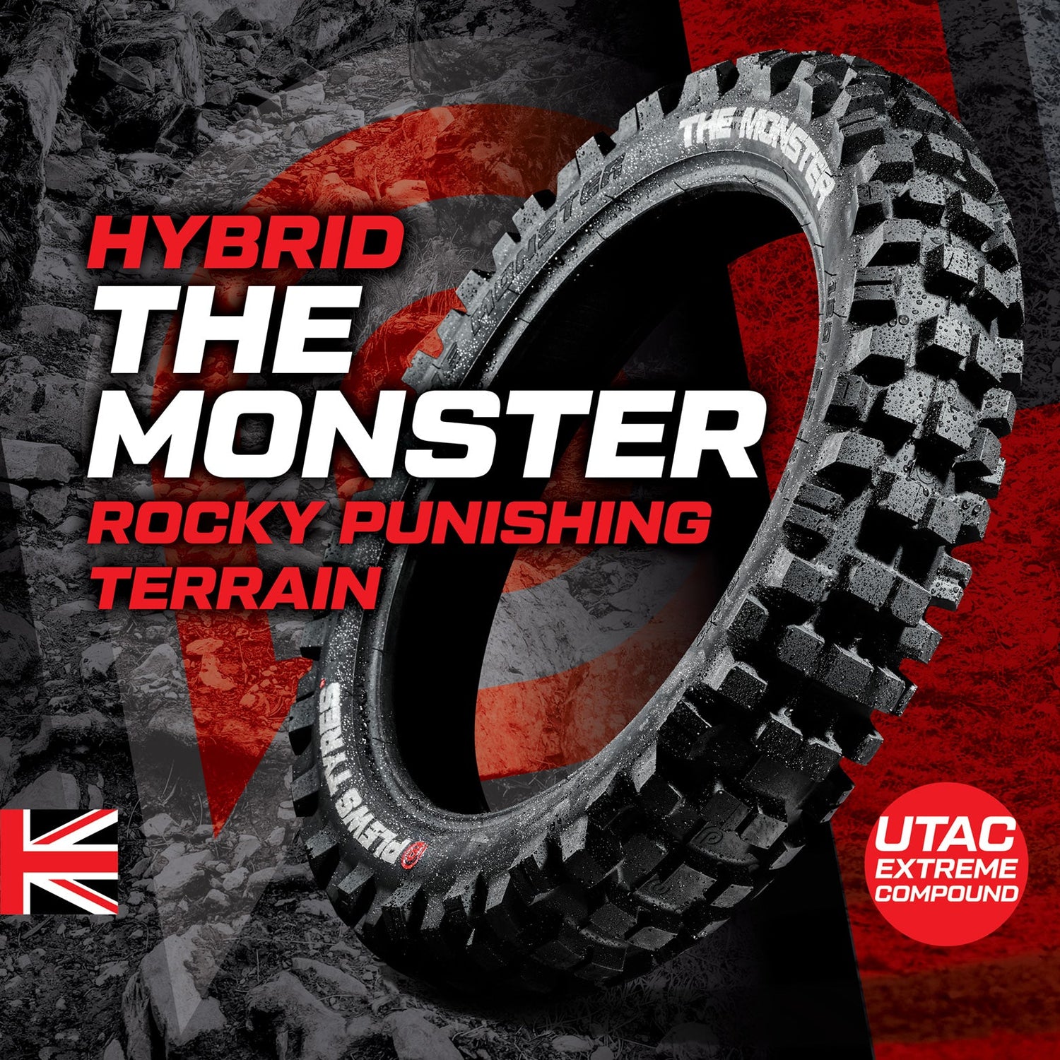 Built for extreme hardpack, rock gardens, and shaley climbs. The Monster uses large, stable blocks to deliver unbeatable contact and control in the harshest conditions. Whether you’re racing the Grinding Stone in Arizona or taking on dry, rugged Spanish